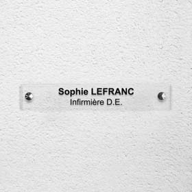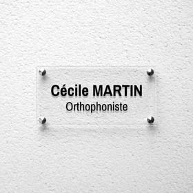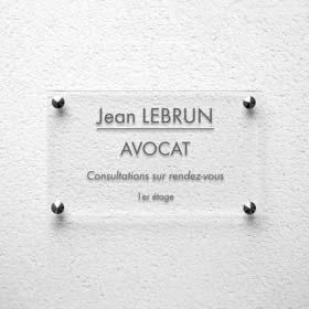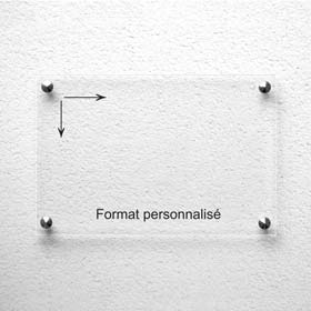 Les plaques professionnelles en plexiglas incolore peuvent être fixées directement au mur ou bien sur un support de couleur en matière acrylique pour favoriser au maximum le contraste et obtenir un effet visuel sans pareil. Une pose par visserie est préconisée, même s’il est bien sûr possible de fixer la plaque à l’aide d’adhésif double-face. L'usage de colle est par contre fortement déconseillé : au-delà de l'aspect esthétique, les solvants contenus dans les colles peuvent entrainer une dégradation de la matière.